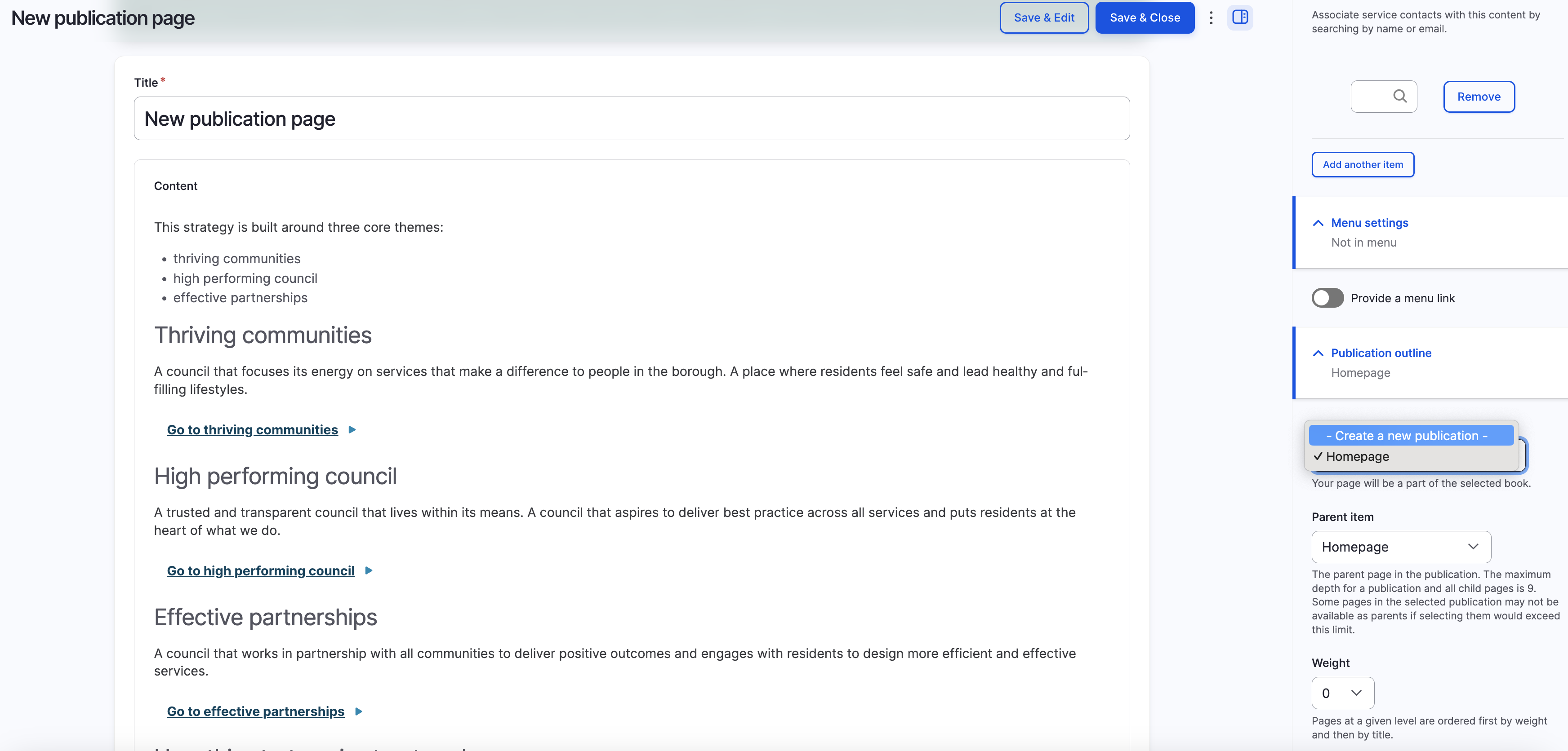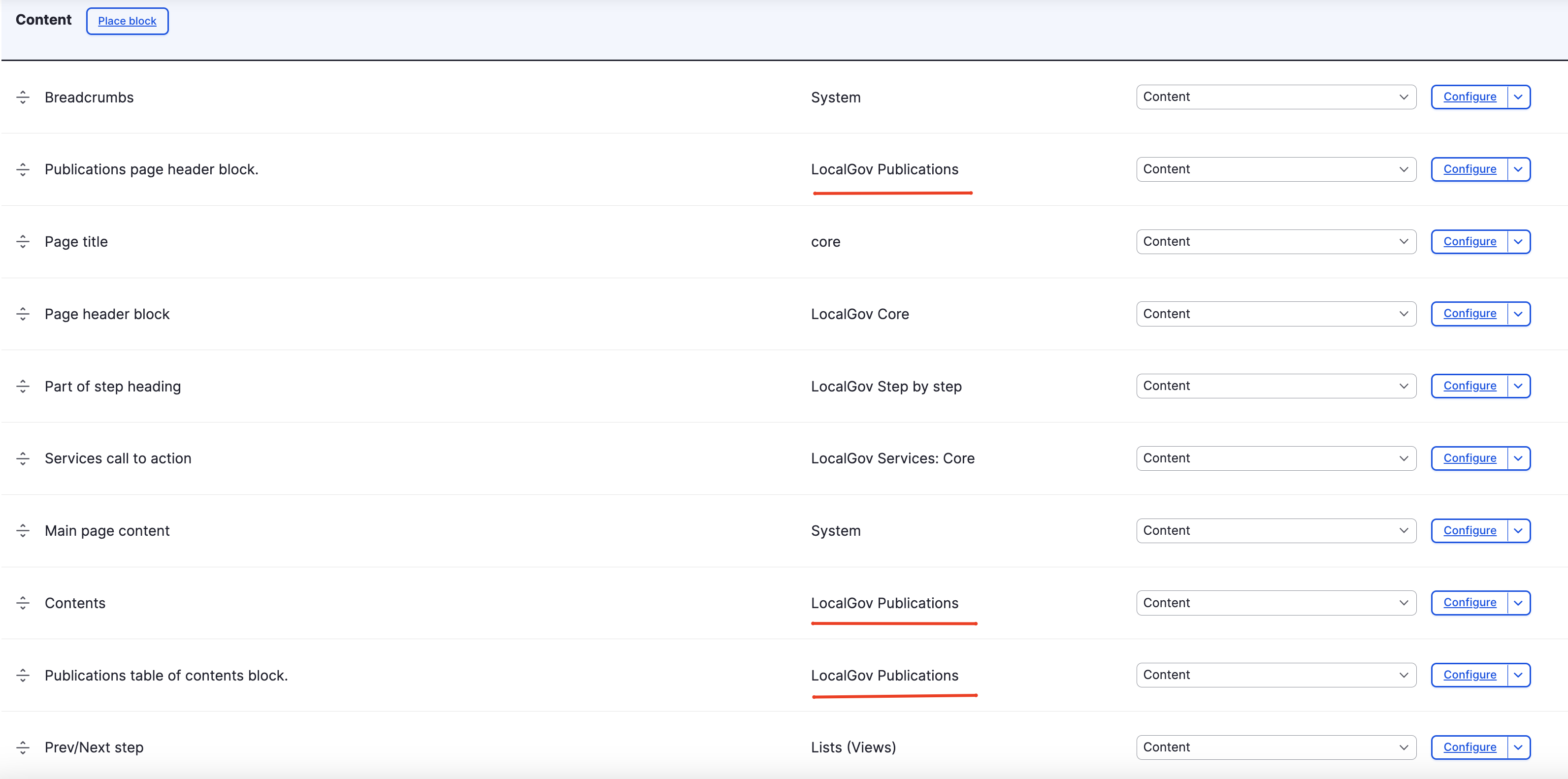 Step 2. Adding LocalGov Publications blocks to the content region: